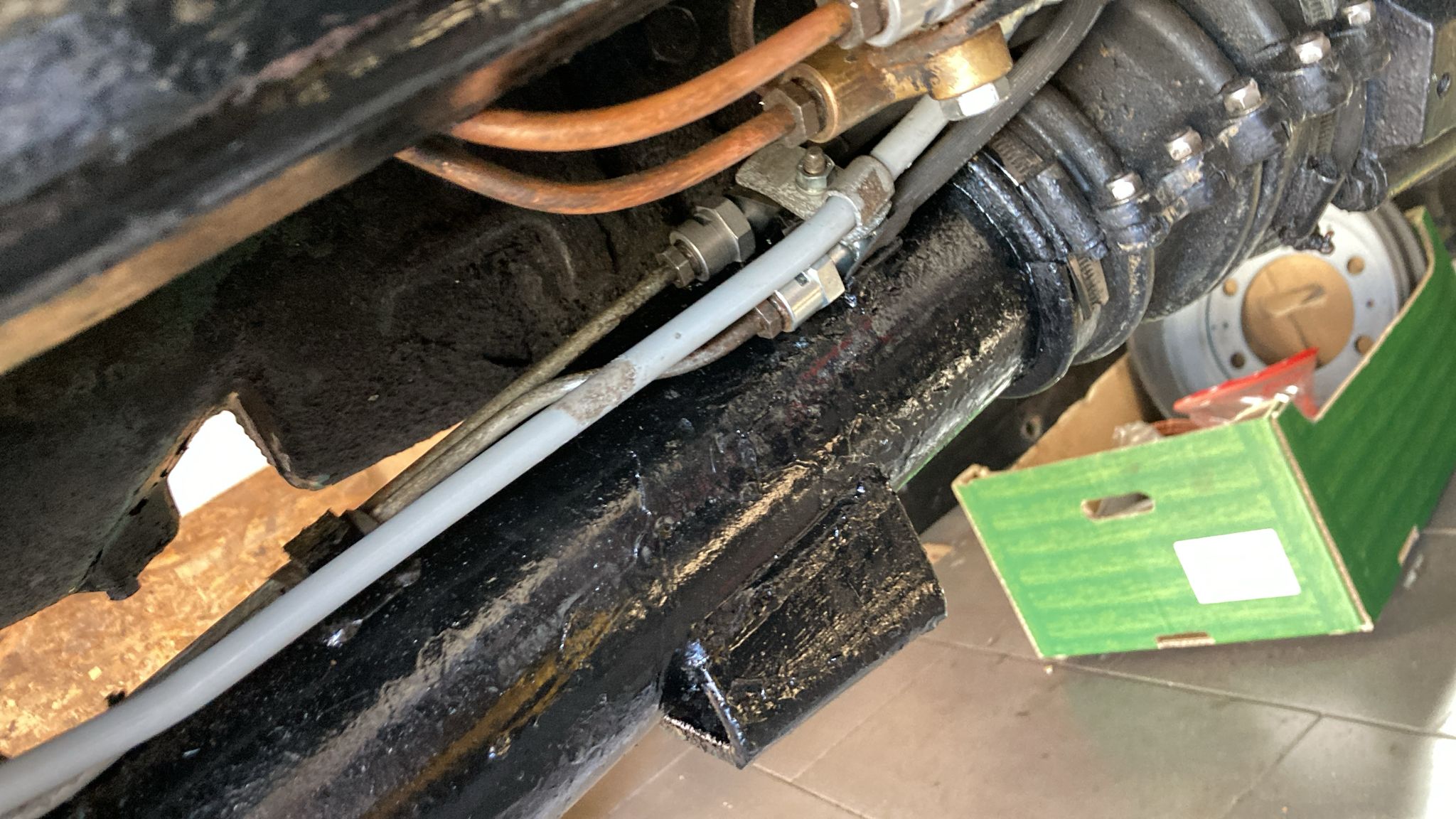 Die Brems- und Kupplungsschläuche im vorderen Bereich des Fahrerhauses sowie an der Kupplung wurden erneuert. Die dazugehörigen Leitungen wurden aufbereitet und neu befestigt.