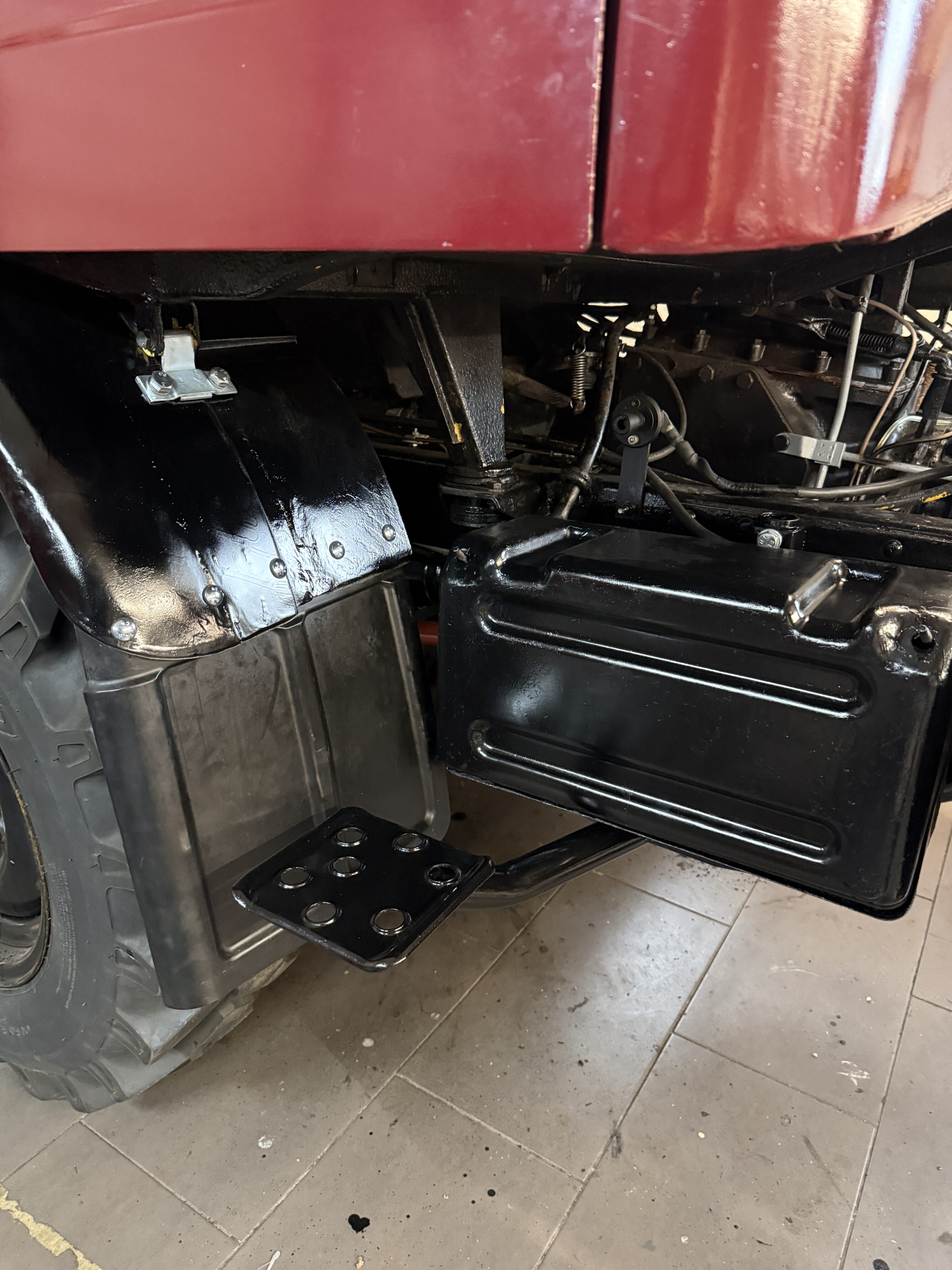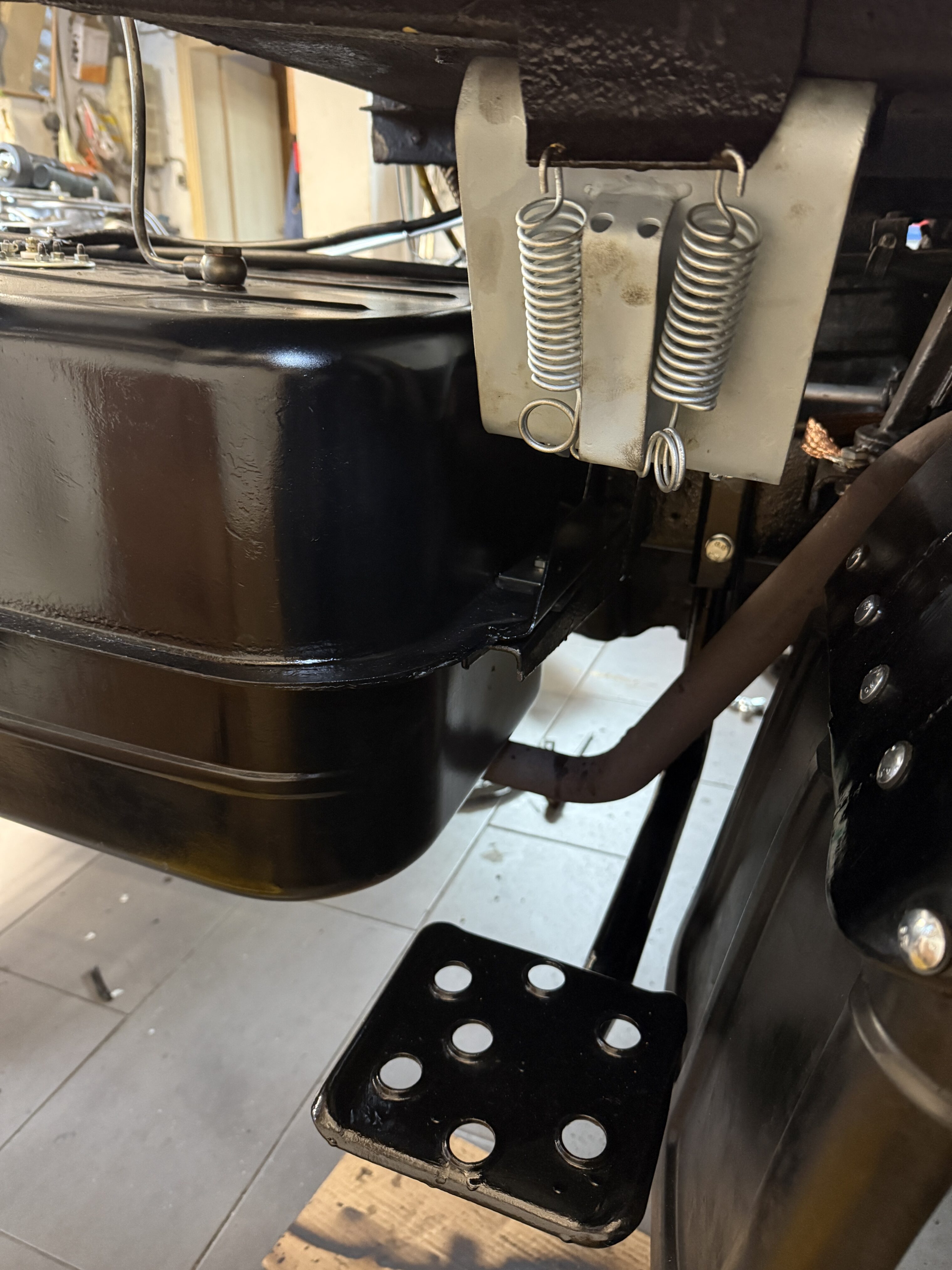 Der Tank wurde wieder montiert und angeschlossen. Auch die Einstiegsbügel wurden wieder angebaut.