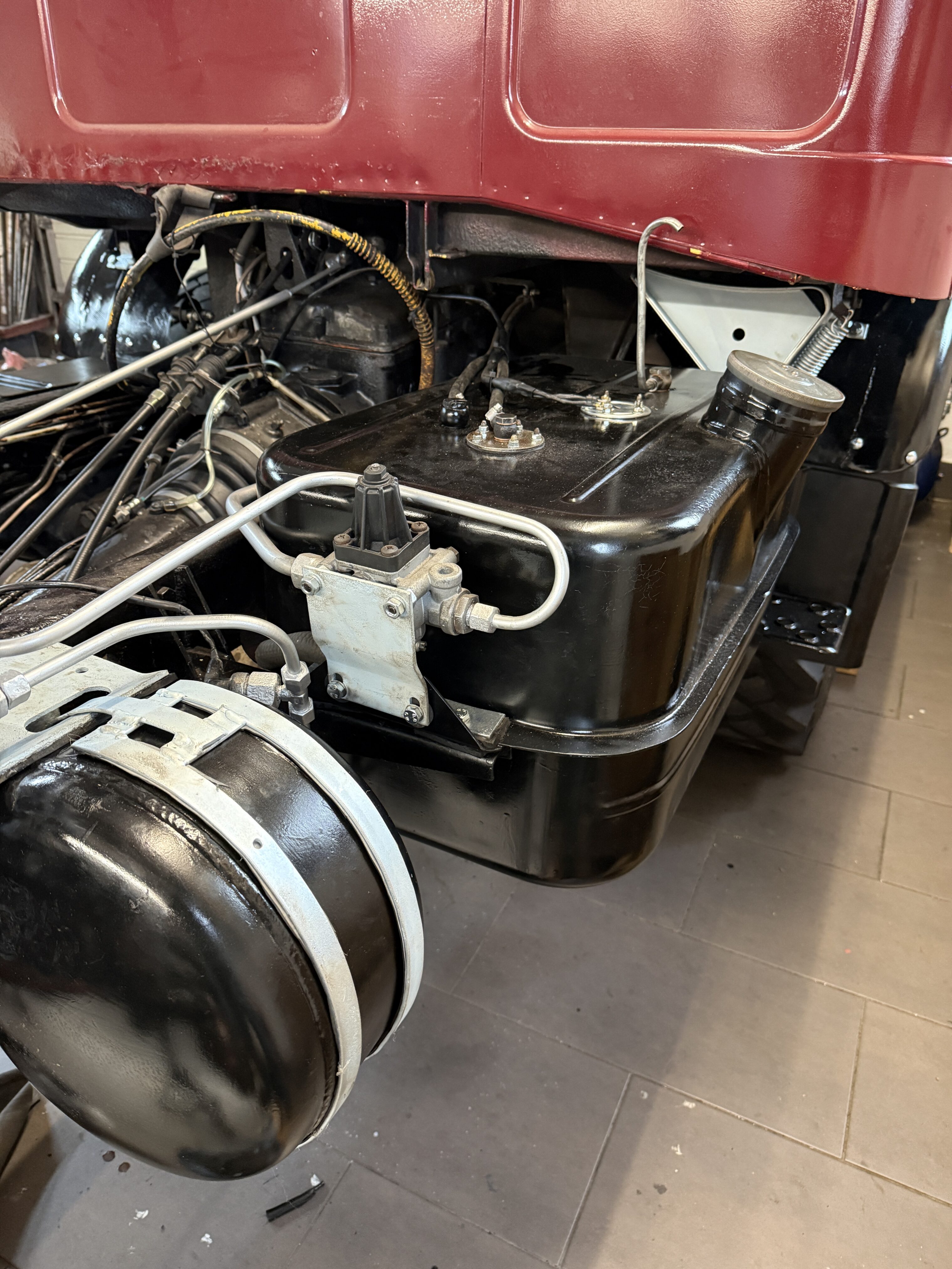 Die Luftbehälter wurden wieder montiert und mit den entsprechenden Leitungen verbunden. Anschließend wurde das Luftsystem extern befüllt und auf Dichtheit geprüft.