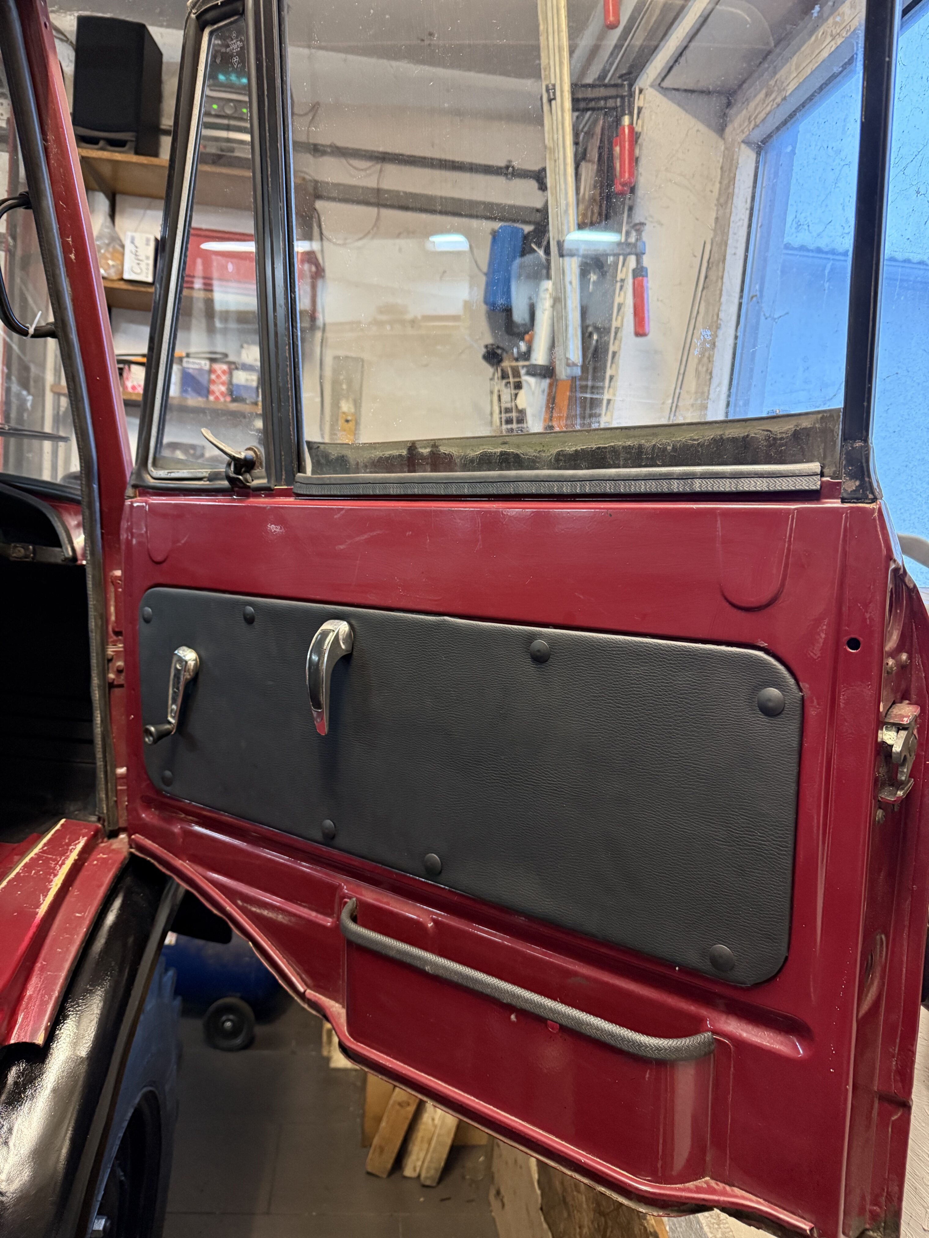Nachdem das Beifahrerfenster bereits vor einiger Zeit instand gesetzt wurde, konnte nun auch die Türverkleidung wieder montiert und geschlossen werden.