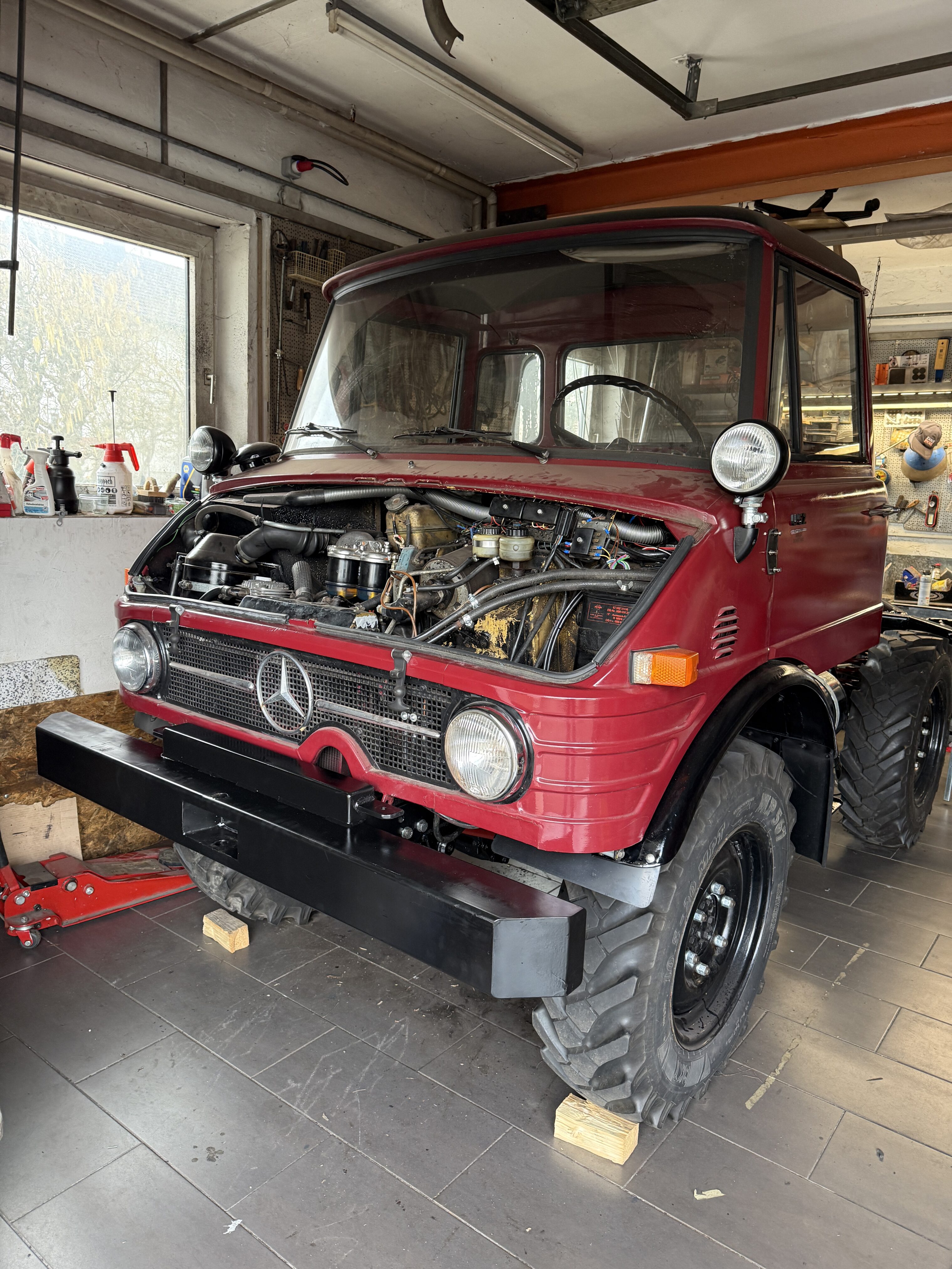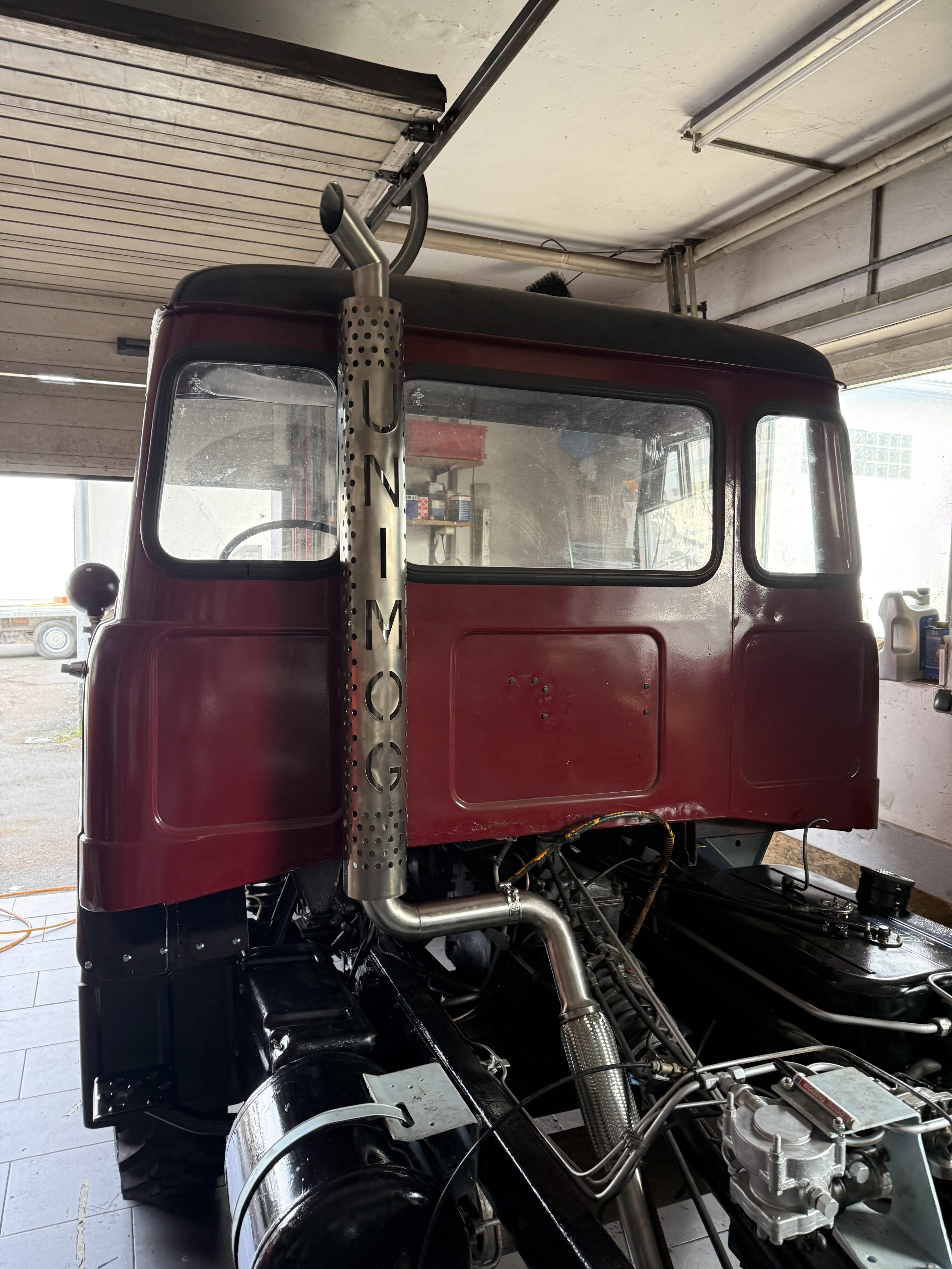 Der Wechsel des Getriebeöls steht ebenfalls noch an, hierfür muss der Unimog jedoch zunächst auf die Grube umgesetzt werden.