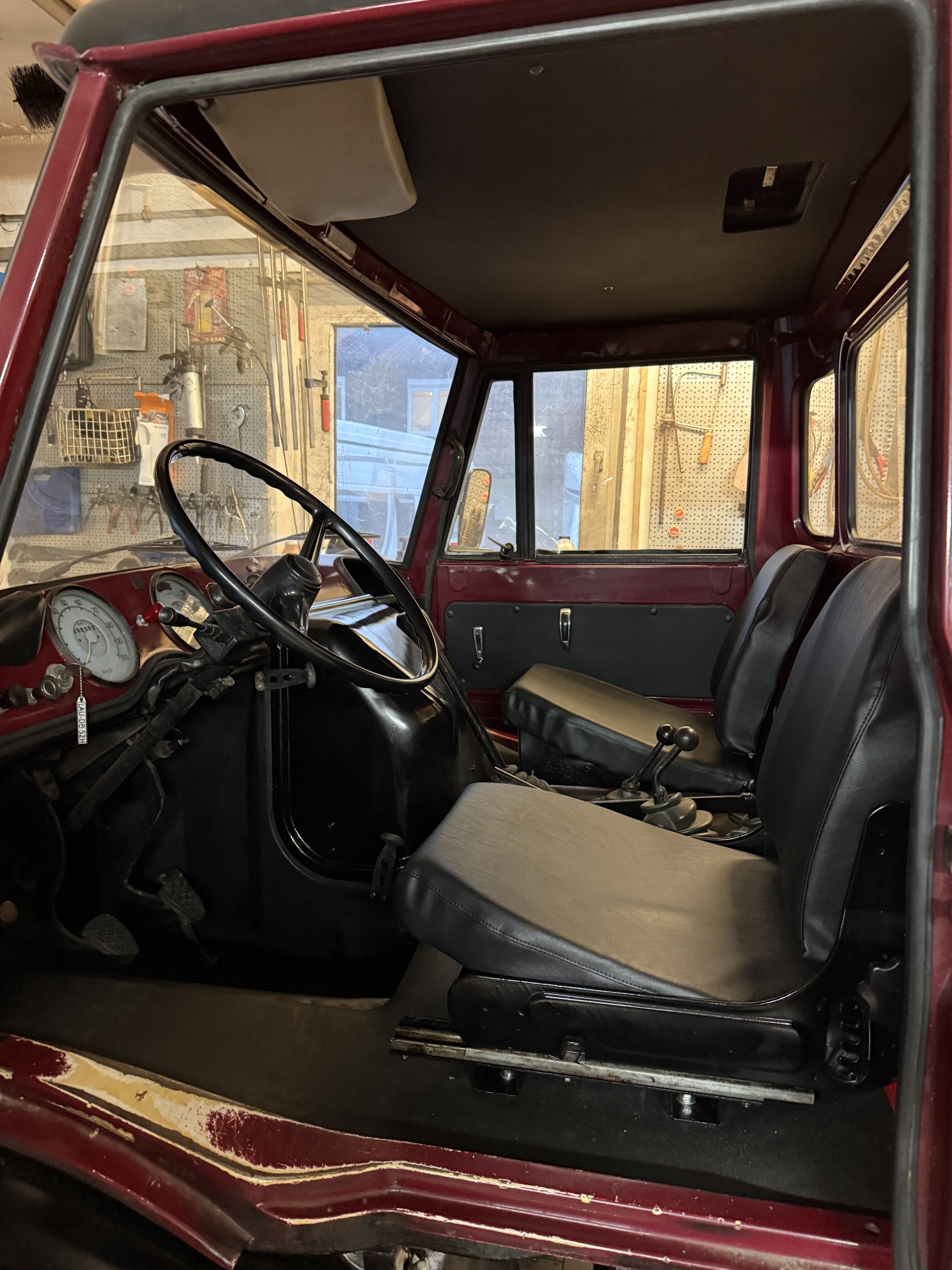 Da das Fahrerhaus soweit fertiggestellt ist, wurden die Sitze eingebaut und die Motorhaube wieder eingesetzt.