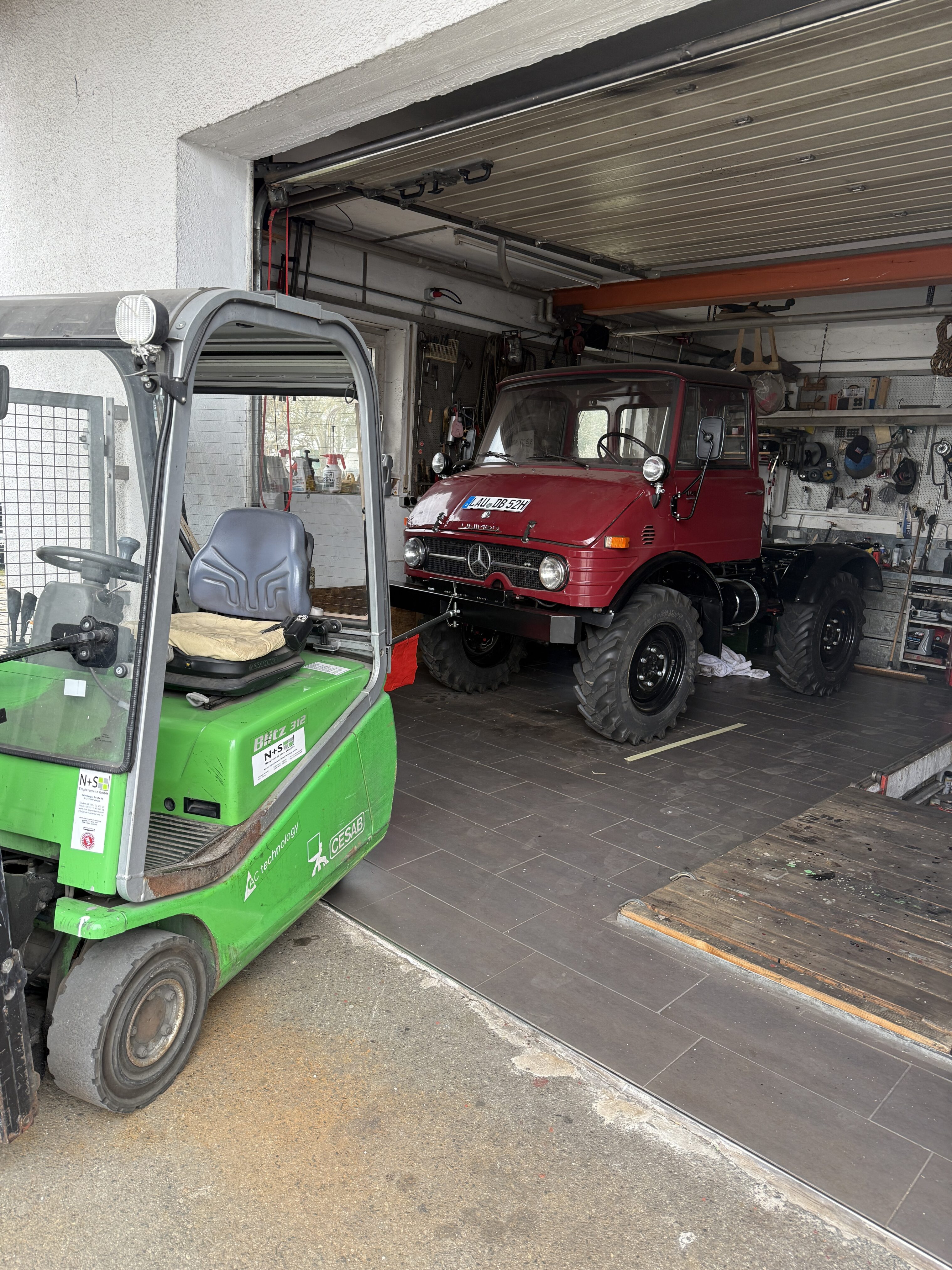 Nach einer weiteren Probefahrt zum Tanken (Dieselpreis: 2,30 € pro Liter!) ging es anschließend für den Getriebeölwechsel auf die Grube.