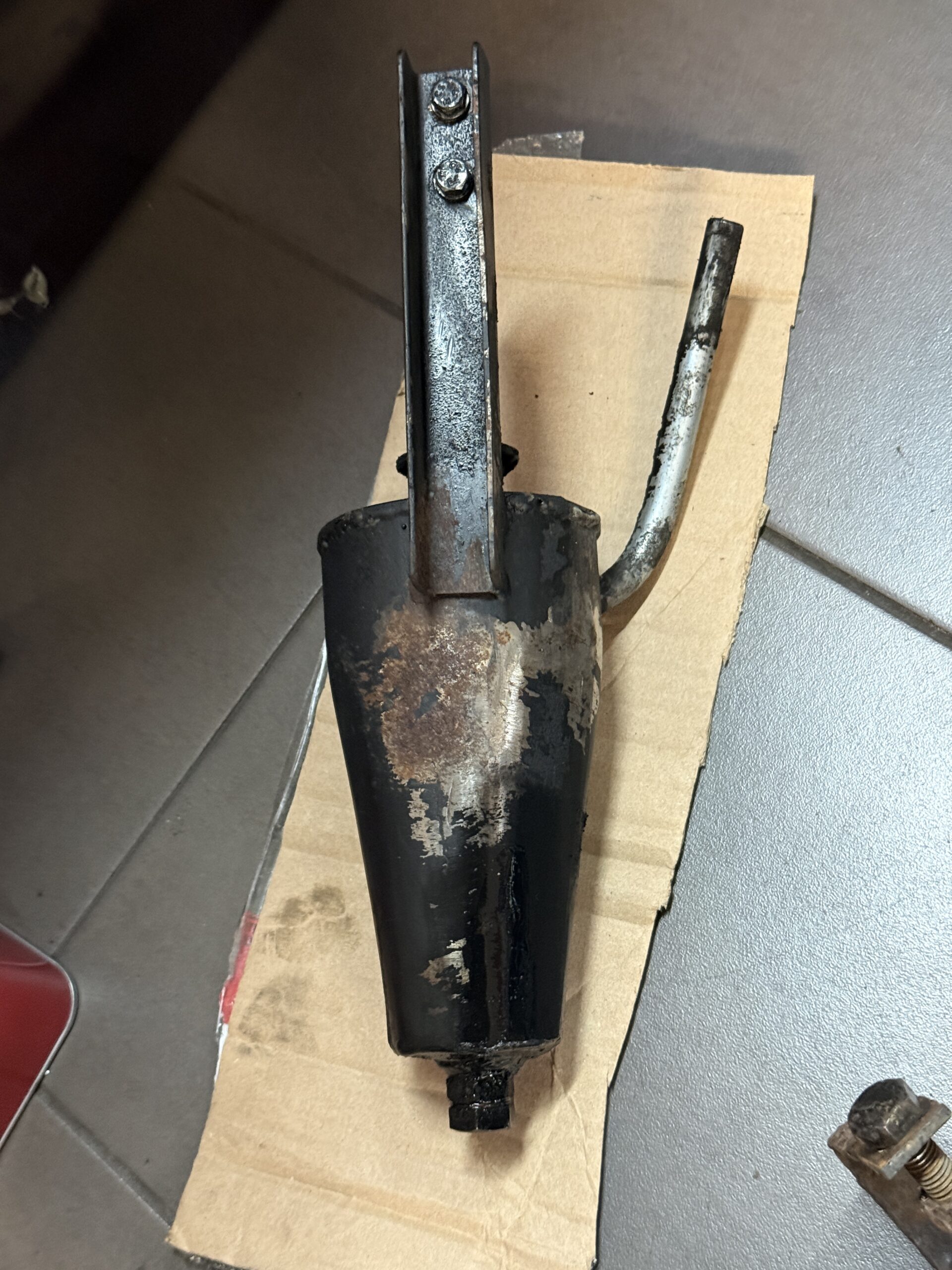 Ein bisher nicht eindeutig zuzuordnendes Bauteil (ein Zylinder) wurde ebenfalls demontiert. Es befand sich auf der Beifahrerseite hinter dem Tank, war jedoch an keine Leitung oder Funktionseinheit mehr angeschlossen. Die genaue Zuordnung wird noch recherchiert. Hinweise oder Informationen dazu sind jederzeit willkommen und können gerne per E-Mail zugesendet werden.