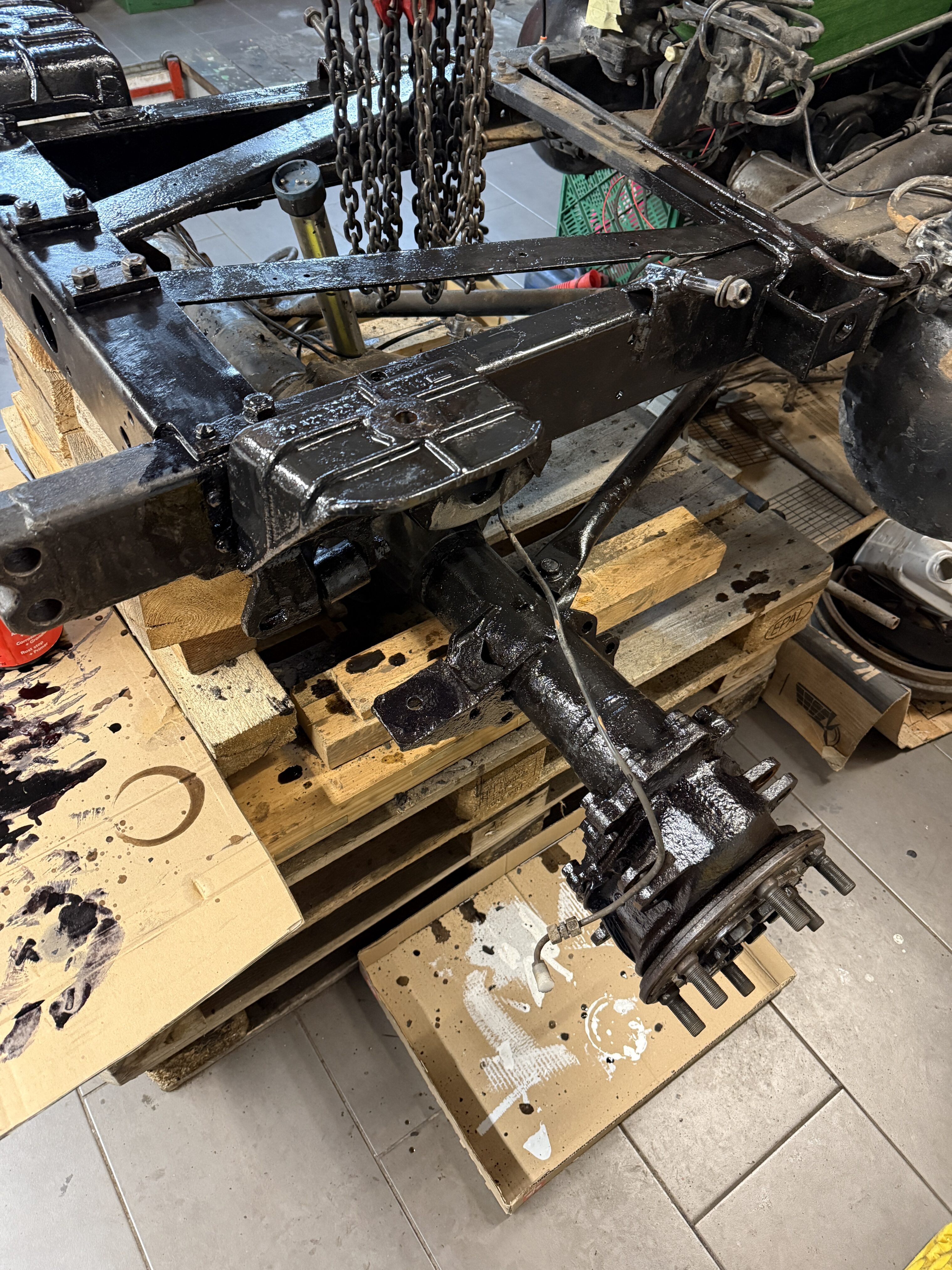 Da derzeit kein Anhängerbetrieb mit Druckluftbremsanlage vorgesehen ist, wurden die entsprechenden Anschlüsse und Leitungen der Anhänger-Druckluftbremse demontiert. Die Komponenten werden separat aufgearbeitet und können bei Bedarf später wieder montiert werden.