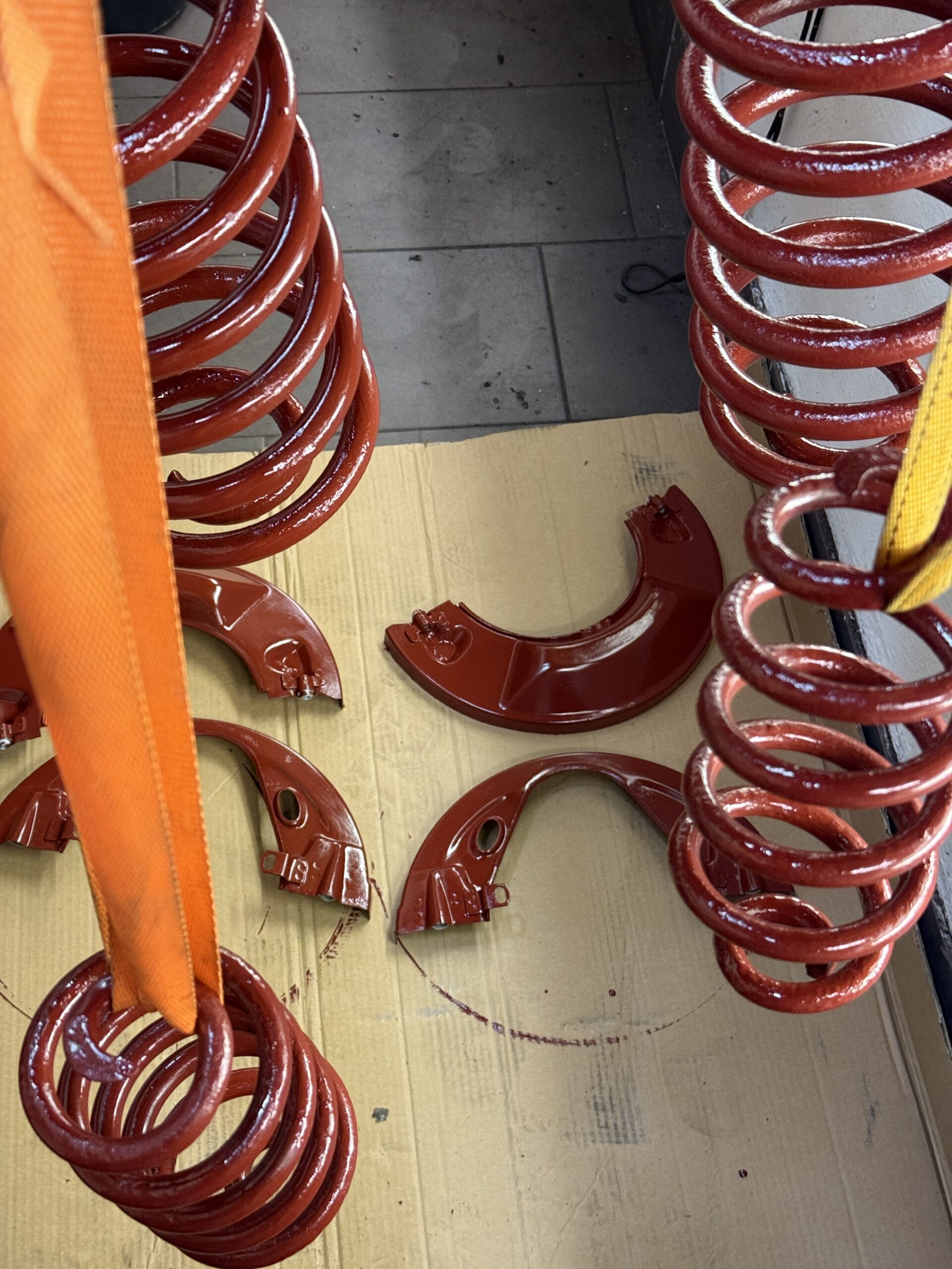 Die ersten sandgestrahlten und teilweise verzinkten Bauteile wurden bereits im vorgesehenen Farbton DB 3575 lackiert. Auch die Kraftrohre erhalten nach ihrer Aufbereitung diesen Farbton. Dadurch heben sich die markanten Komponenten des Fahrwerks optisch vom übrigen Chassis ab und erzeugen ein klar strukturiertes Gesamtbild.