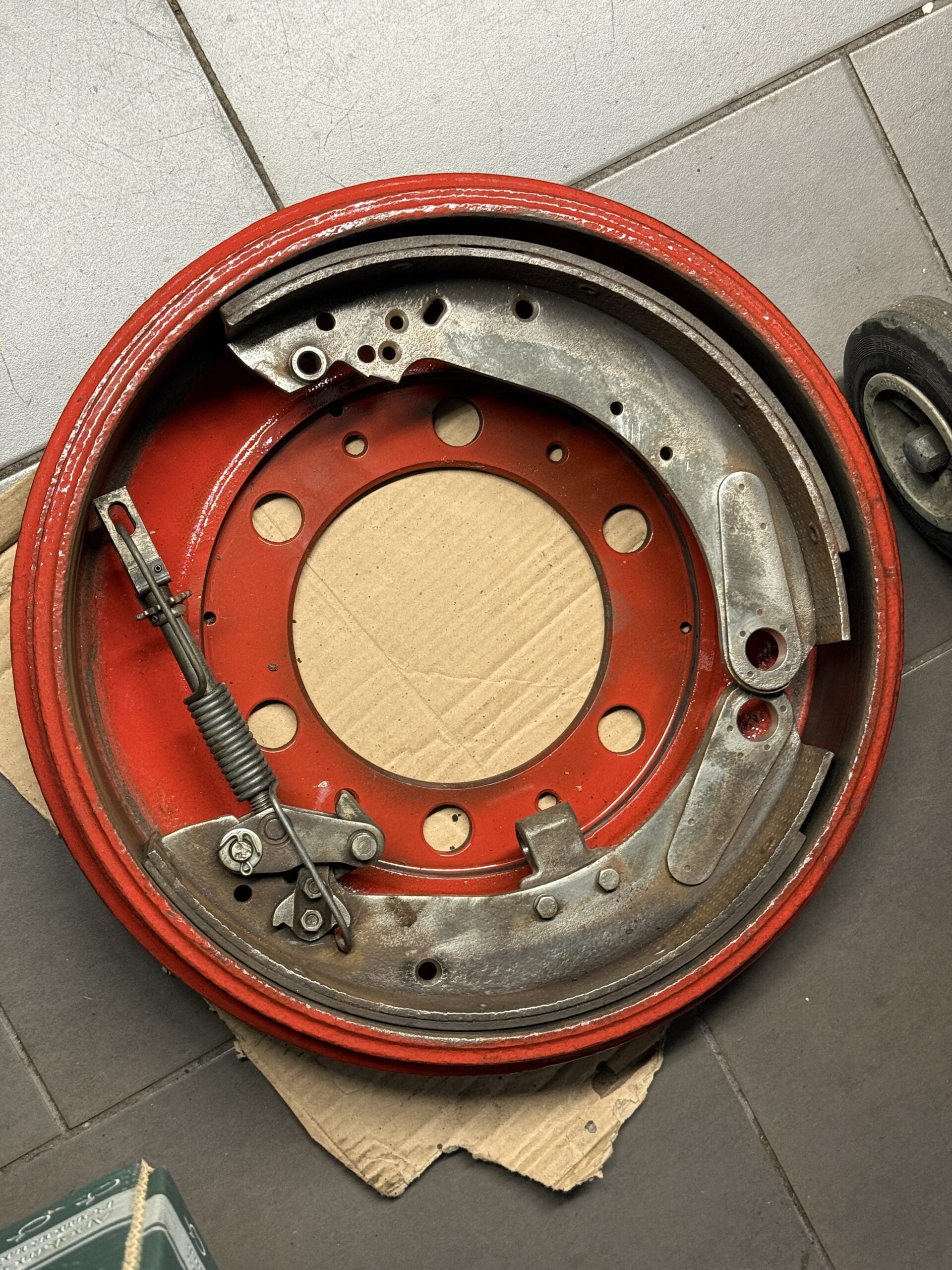 Die Instandsetzung der hinteren Bremsanlage läuft ebenfalls auf Hochtouren. Die überarbeiteten Radbremszylinder werden mithilfe der Reparatursätze nahezu in den Neuzustand versetzt. Die vorhandenen Bremsbeläge sind für den vorgesehenen Einsatzzweck weiterhin ausreichend. In Kombination mit den neuen Handbremsseilen ist die hintere Bremse damit vollständig überholt.