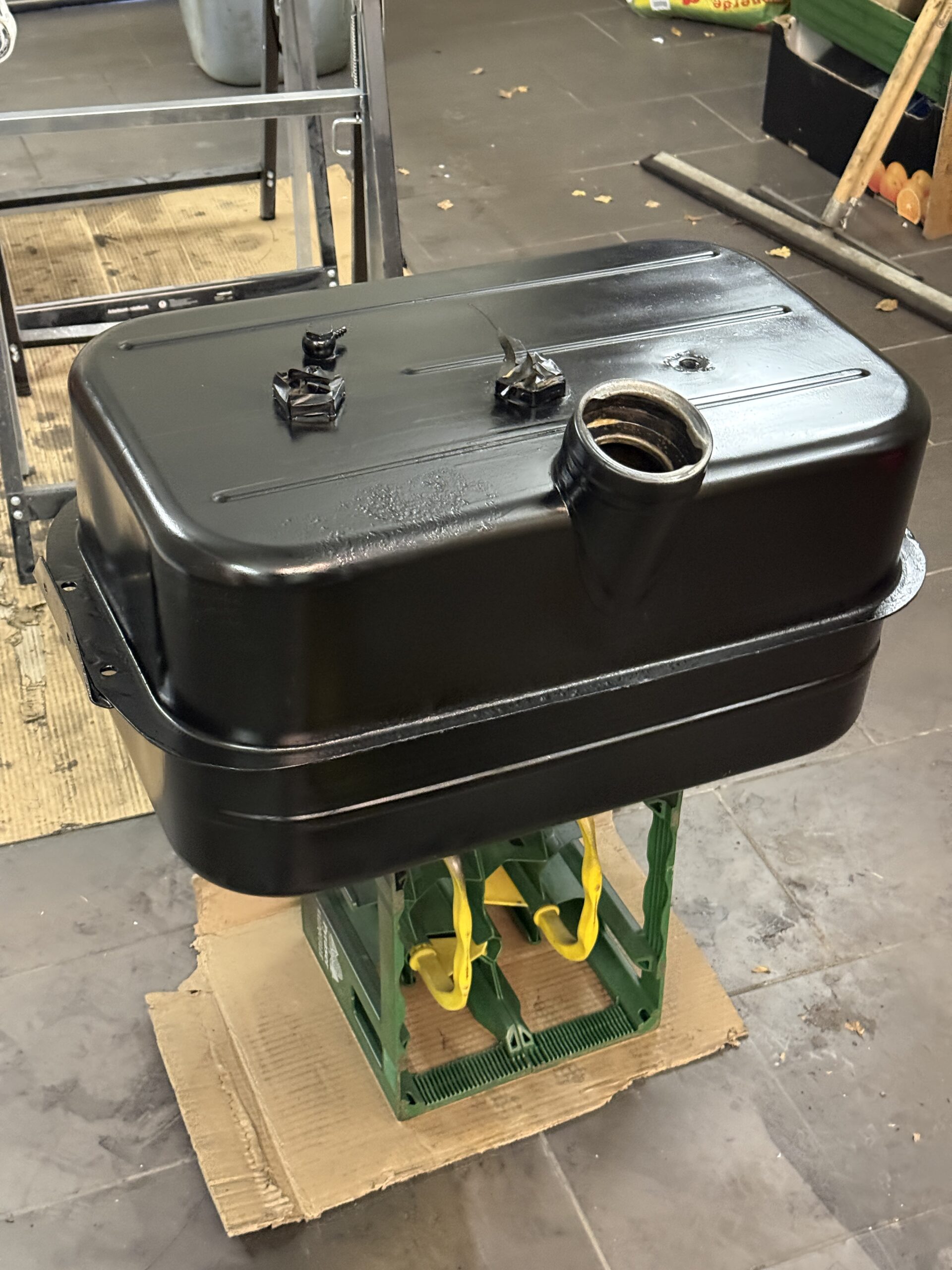 Die ersten Anbauteile wurden bereits aufbereitet und final lackiert. Dazu gehören unter anderem der Kraftstofftank und der Luftspeicher für die Anhängerbremse.