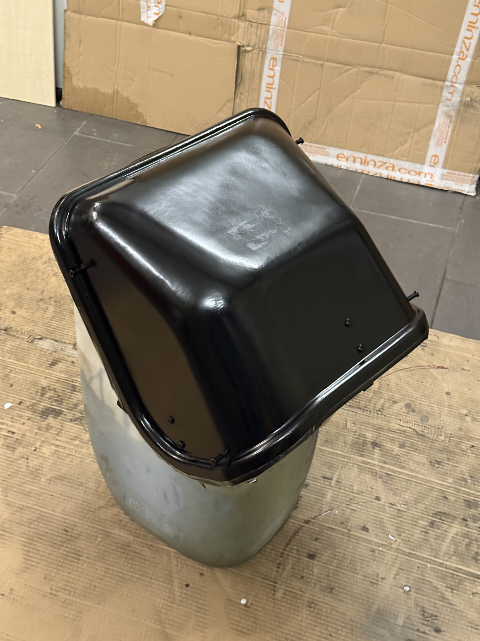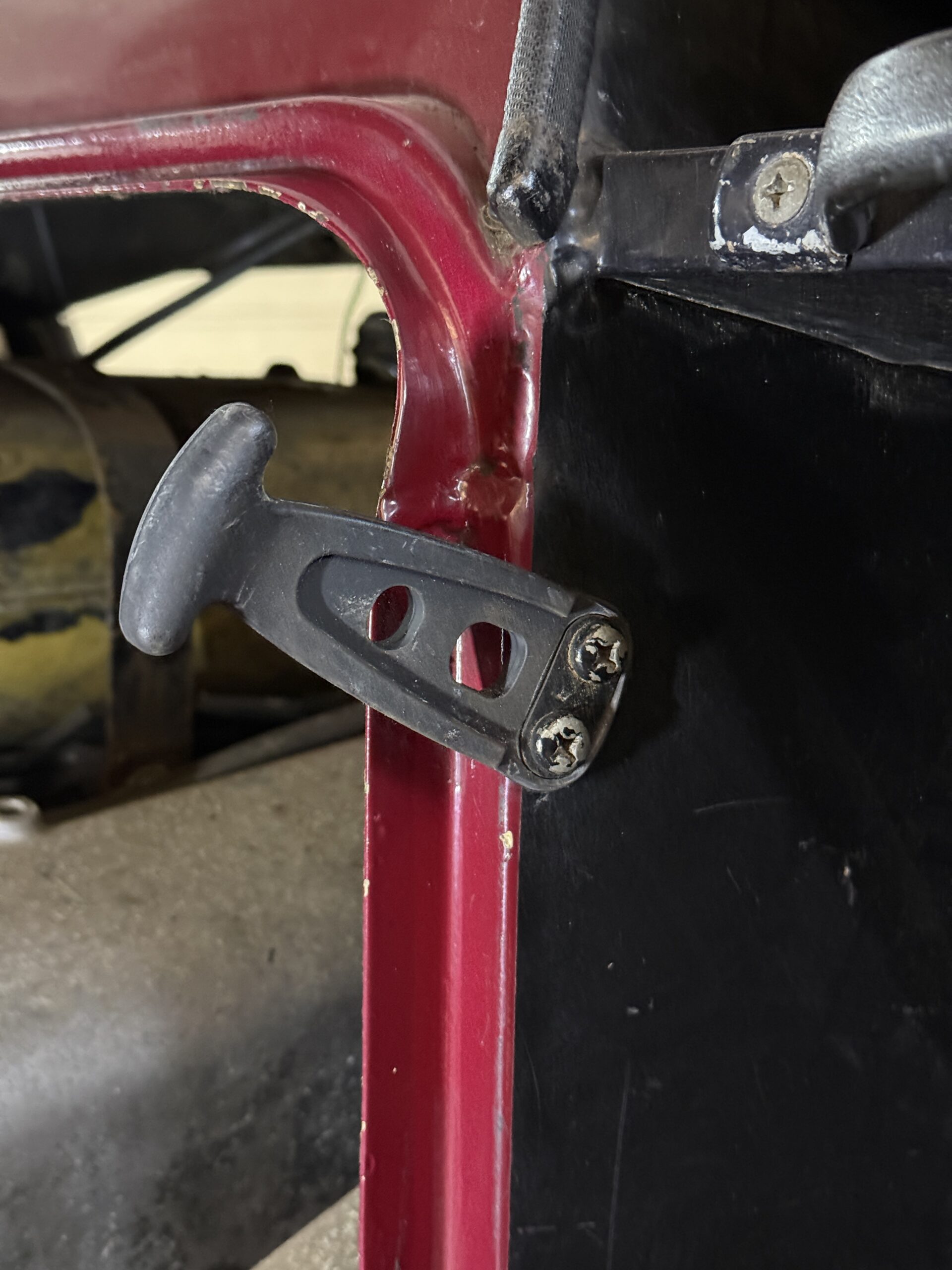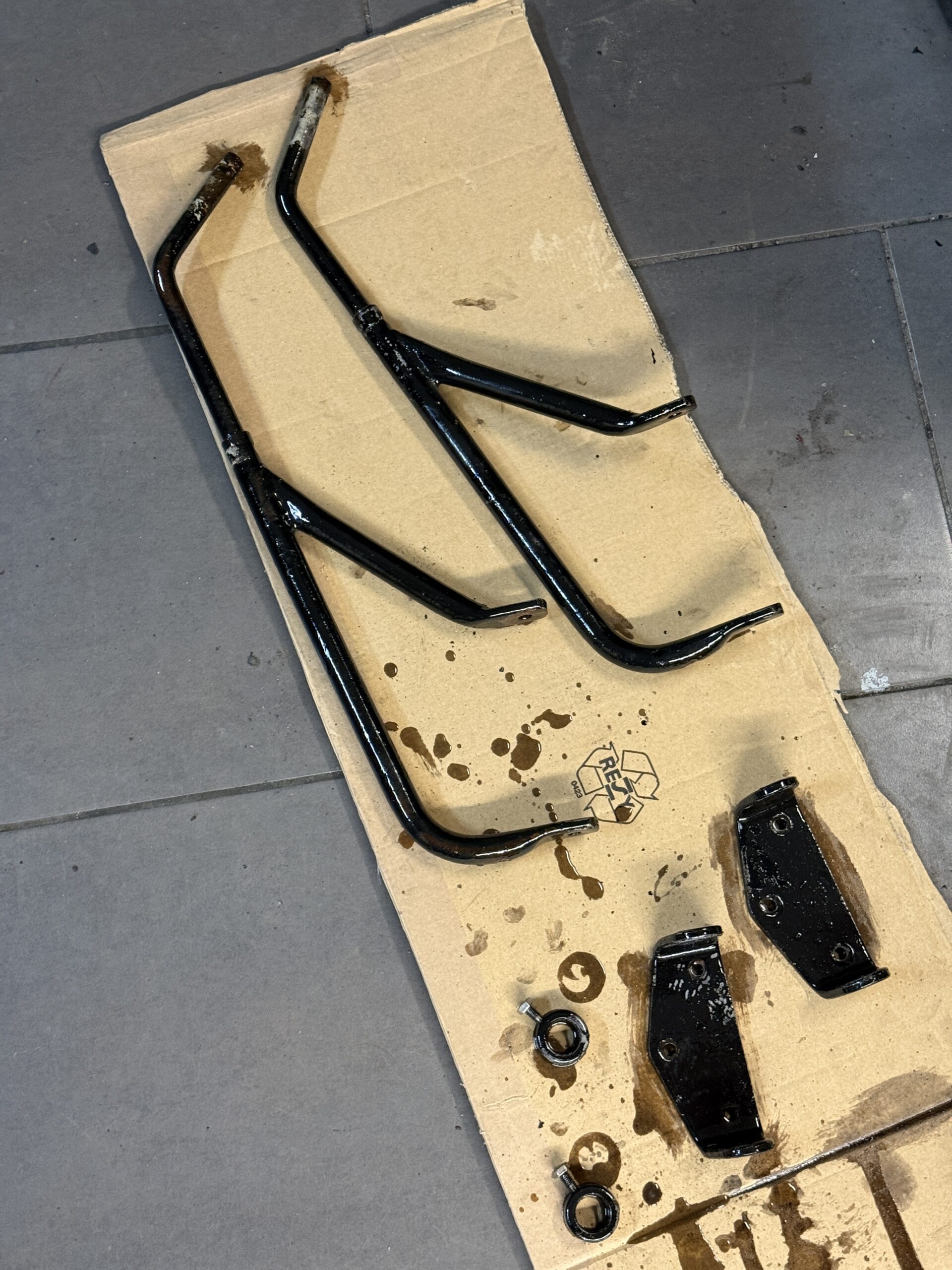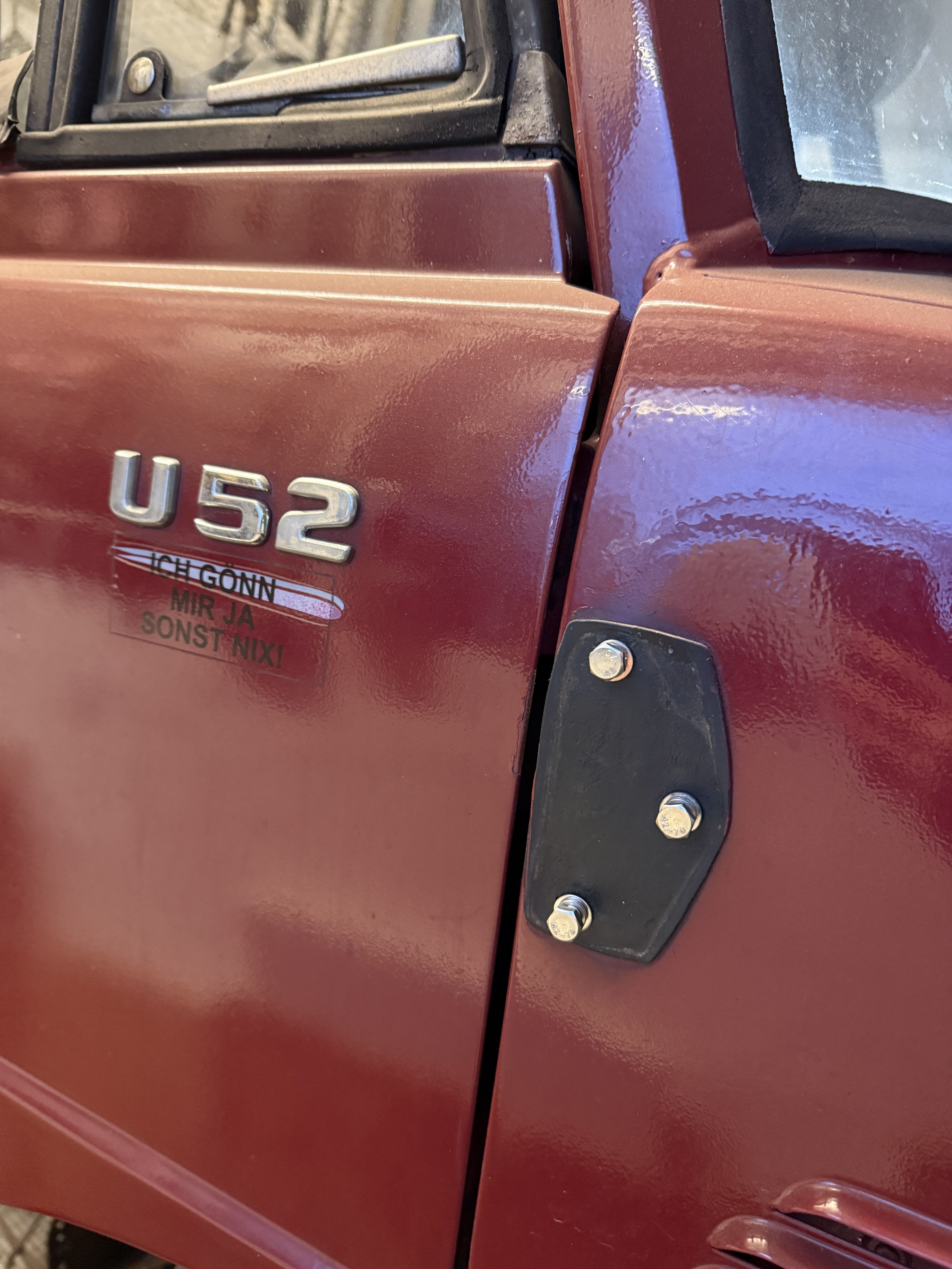 Beide Außenspiegel wurden demontiert und zerlegt, die Halterungen werden derzeit neu lackiert. Für die spätere Montage kommen neue Schrauben zum Einsatz. Zudem wird versucht, wieder die kleinen originalen Rückspiegel zu beschaffen. Zwar bieten die großen LKW-Spiegel eine bessere Sicht, optisch passen die originalen Spiegel jedoch deutlich besser zum Gesamtbild.